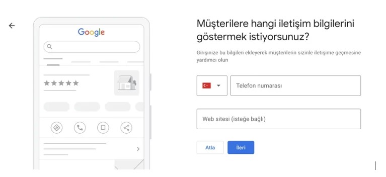 İşletmenizin telefon numarası ve web sitesi alanı eksiksiz doldurulur. Bu bilgiler arama sonuçlarında kullanıcıların sizi daha kolay bulmasını ve doğrudan iletişim kurmasını sağlar.